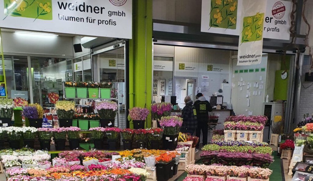 Blumen Weidner ist der älteste Schnittblumenhandel im Blumengroßmarkt München. Seit 1968 steht der Name Weidner für erstklassige Schnittblumen, frisches Schnittgrün und verlässlichen Service. Heute bietet das Unternehmen auf rund 500 Quadratmetern in der Großmarkthalle ein breites Sortiment an Blumen für den professionellen Handel.